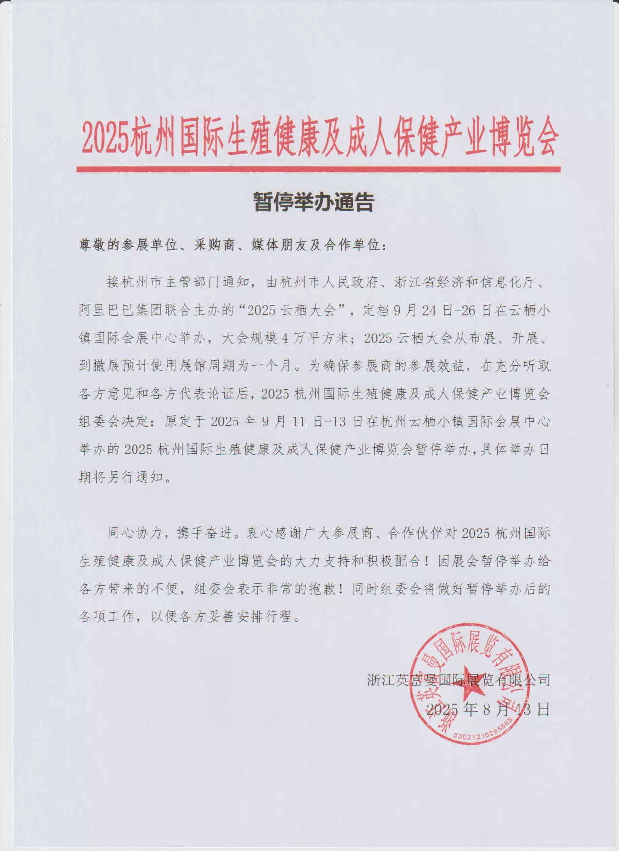 暂停举办通知