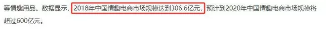 2018年,中国情趣用品电商市场规模达到306.6亿元,2020年突破600亿元,预计2022年已超过800亿元。
